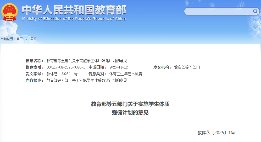 教育部等五部门关于实施学生体质强健计划的意见