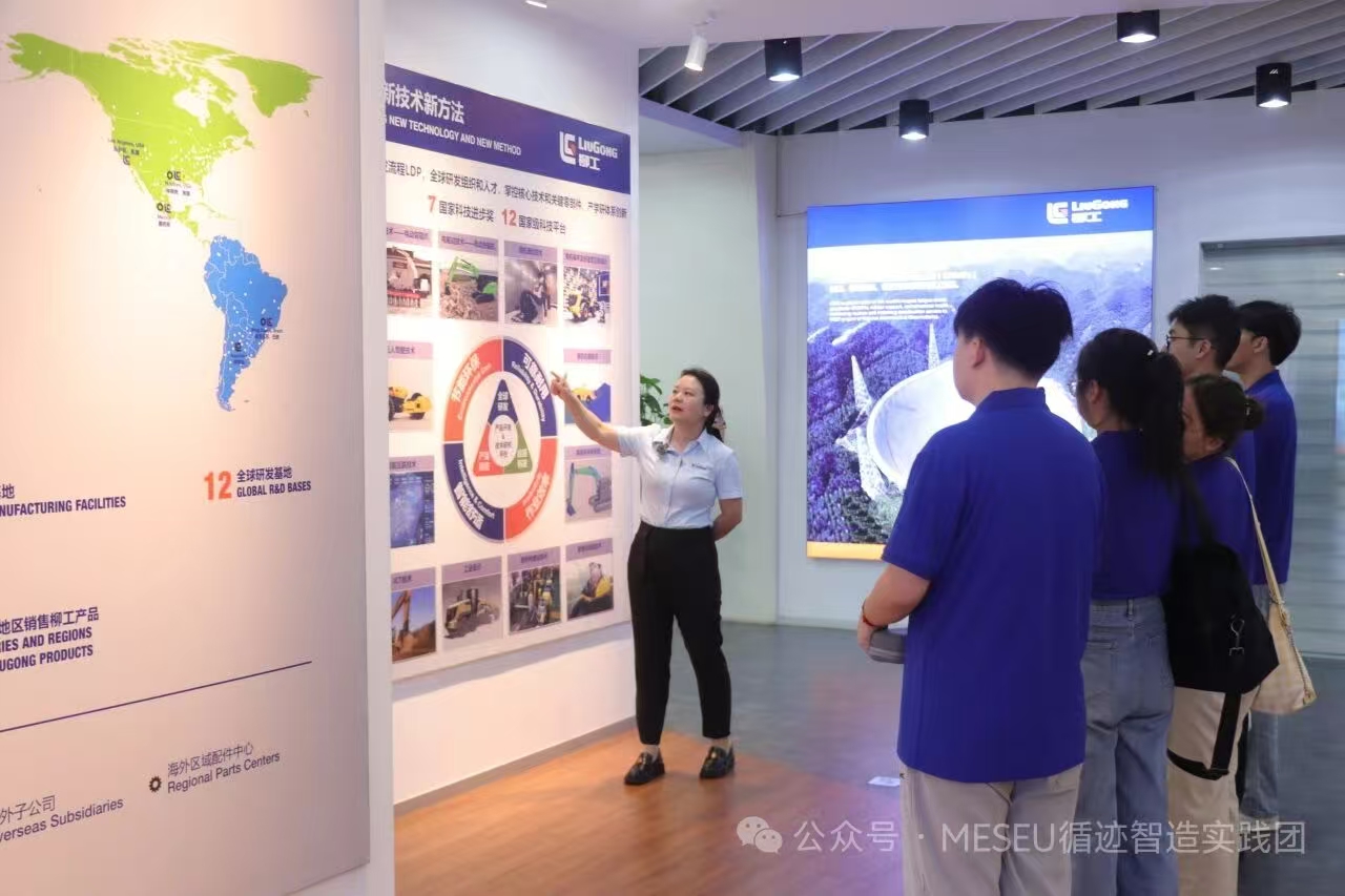 在广西柳工,师生团队参观了柳工研发中心和挖掘机、装载机等产品生产线,详细了解企业在新产品开发、智能制造等方面的实践成果。柳工新科技研究院高级工程师、德赢vwin官方入口2022届博士毕业生伍建伟开展题为“工业机械设计变革——数字仿真正向设计的发展与展望”的专题技术讲座,结合自身从事科研转化的工作体会,阐释了机械工程前沿技术与产业应用深度融合的路径与前景。