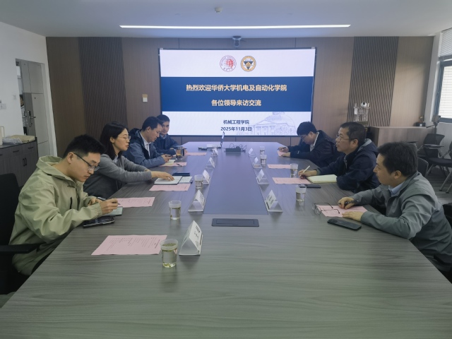 2025年11月3日,华侨大学机电及自动化学院院长林添良,副院长张勇、姜峰,学科秘书黄博林等一行4人来德赢官网调研交流。德赢官网党委书记王军,副院长刘晓军、王乾乾,机械制造系党支部书记吴泽,办公室主任王超等参与交流。