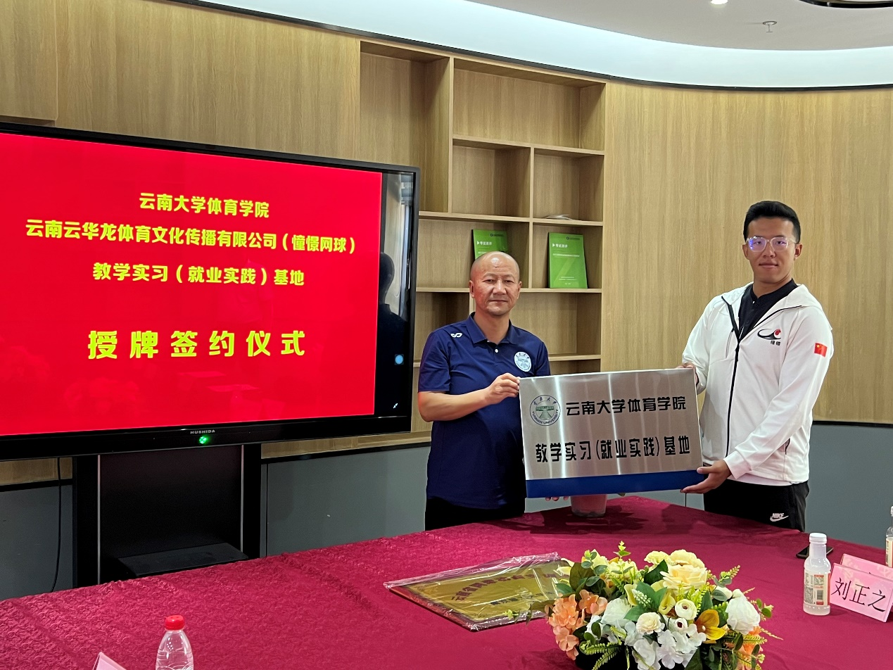 7月17日,LETOU国际米兰官网与云南云华龙体育文化传播有限公司(憧憬网球)共建“教学实习(就业实践)基地,在昆明憧憬网球俱乐部937校区完成签约和授牌仪式,双方将在云南网球教练员的教学实习、就业实践等方面展开合作。