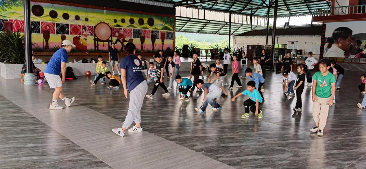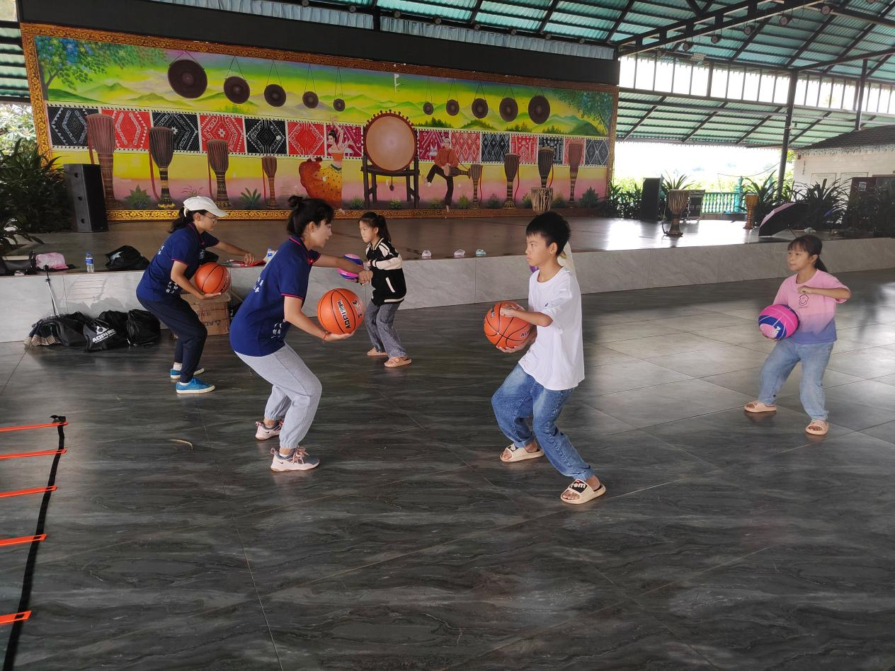 去到曼拉村,我发现这里的体育设施很少,体育师资水平也比较低,一个小学只有一个体育老师,像体育课这种专业训练课,对以农村学生来说,需要老师的详细讲解。从8月2号到8月7号,每天早上9点到11点,晚上8点到10点,我们把60多名学生按照年龄和兴趣分成趣味篮球操、跳绳、少儿足球、拉拉操和体育游戏进行小组教学,使每个学生都有所收获,每次课后我都会对他们的作业进行讲解。虽然我不能记住他们的名字,但我记住了他们享受体育带来乐趣时的喜悦之情。