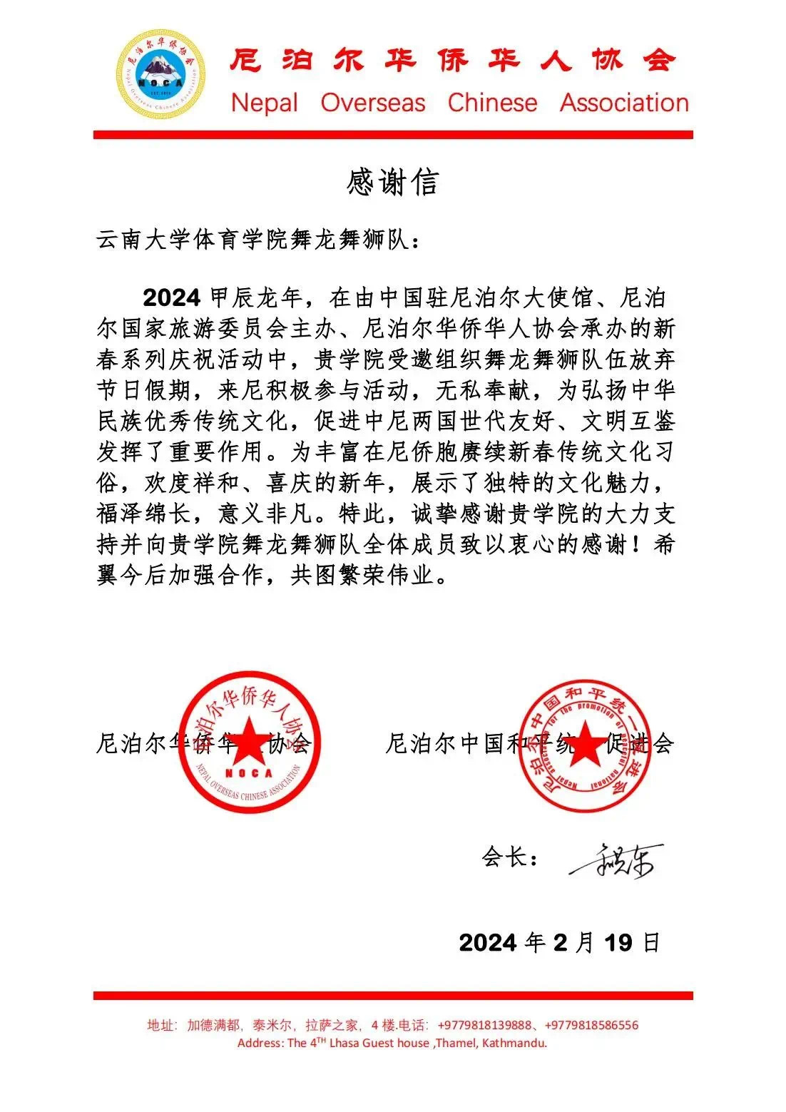 丰富多彩的新春系列庆祝活动,不仅加强中尼两国人民的文化交流,促进相互了解,夯实友谊基础,同时也为在尼华侨华人提供一个温馨团聚、共享团圆之乐的平台,共同迎接龙年的到来。