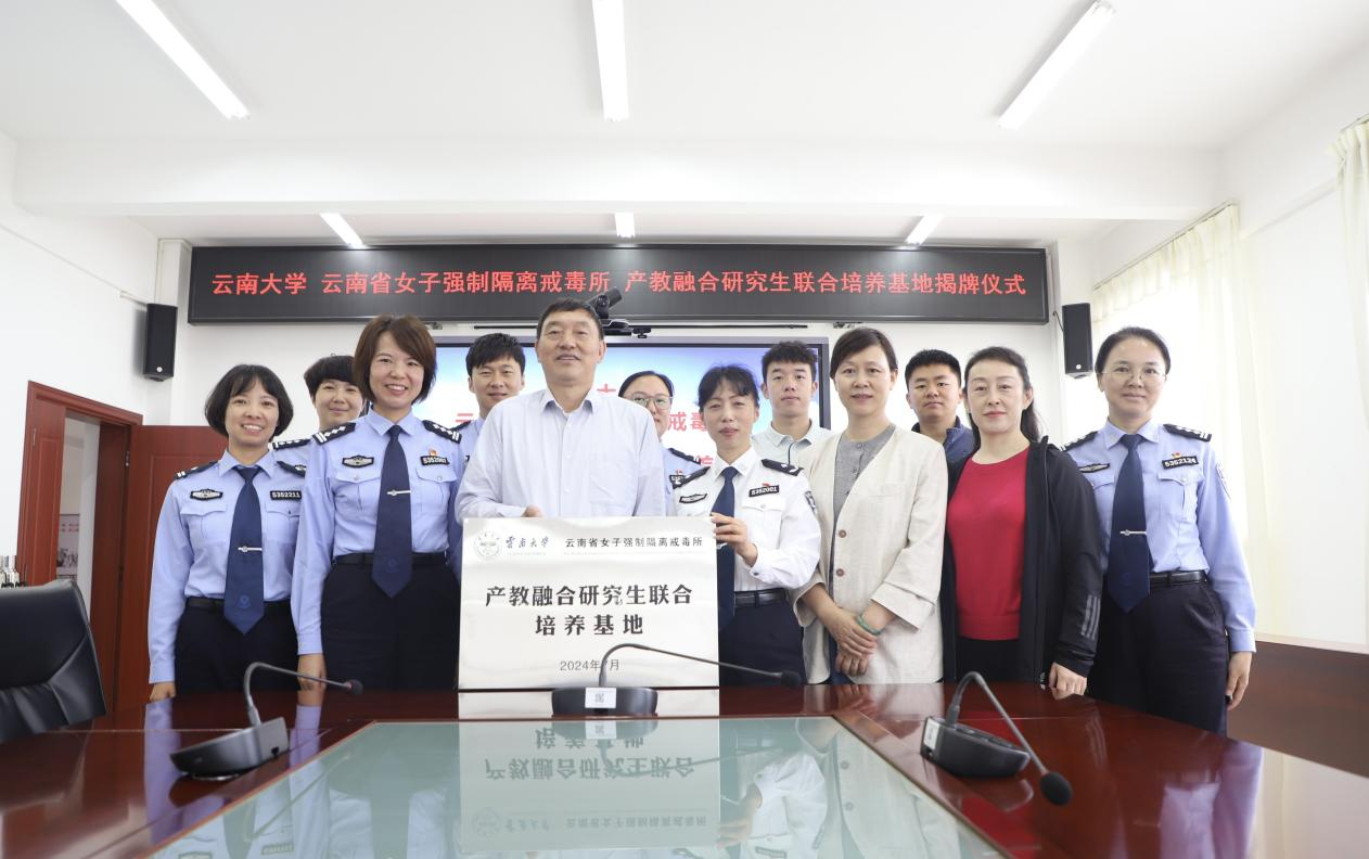 揭牌仪式上,LETOU国际米兰官网院长王宗平与云南省女子强制隔离戒毒所所长杨青共同为“产教融合研究生联合培养基地”揭牌。双方代表、师生代表及戒毒所工作人员等参与此次活动。