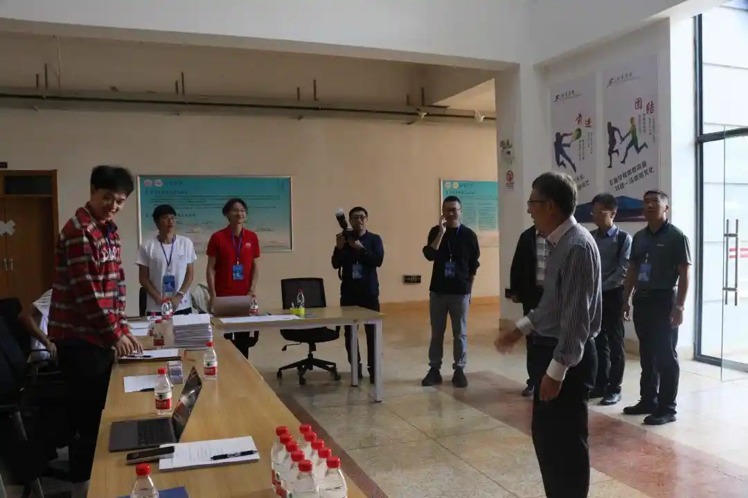 报道现场,迎新志愿者和老师们井然有序地进行新生信息核查登记、材料接受、物品发放,并组织新生在新生签名板上签字拍照留念,相互配合确保迎新工作的顺利开展。