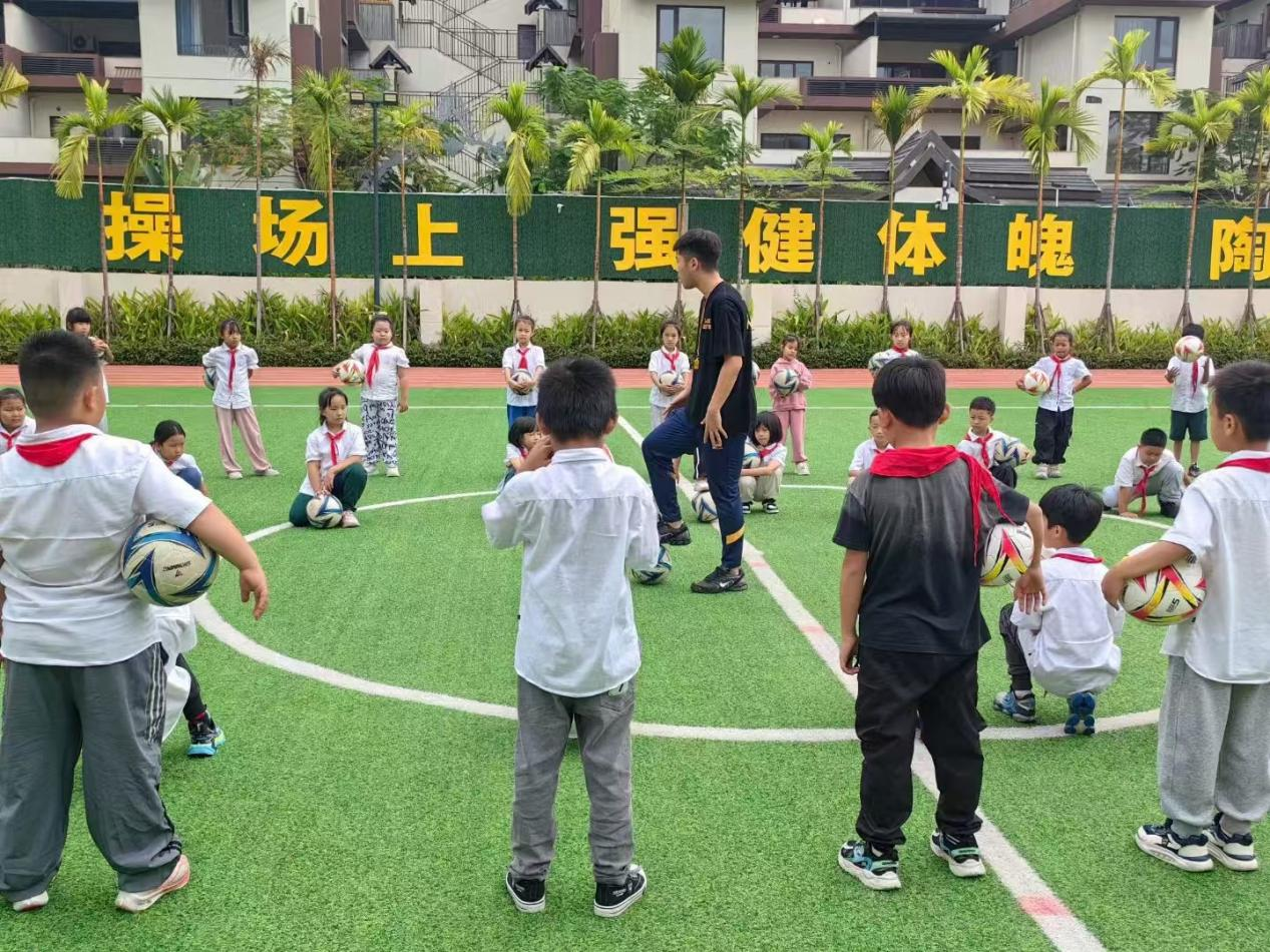 2024年11月13日上午,LETOU国际米兰官网体育美育浸润行动计划帮扶团在景洪市教体局王祥副局长的带领下,来到景洪市第六小学开展教学活动。景洪市第六小学是一所新建小学,学校2021年12月开工建设,2023年9月投入使用,占地面积20余亩,总建筑面积26万平方米,2023年秋季开学招生12个教学班,现在校学生536人。LETOU国际米兰官网第三批帮扶团成员孟小博、李昊阳同学以“快乐足球·健康成长”为主题进行了第二轮巡回授课,为六小的小朋友们带来了快乐而精彩的校园足球课。