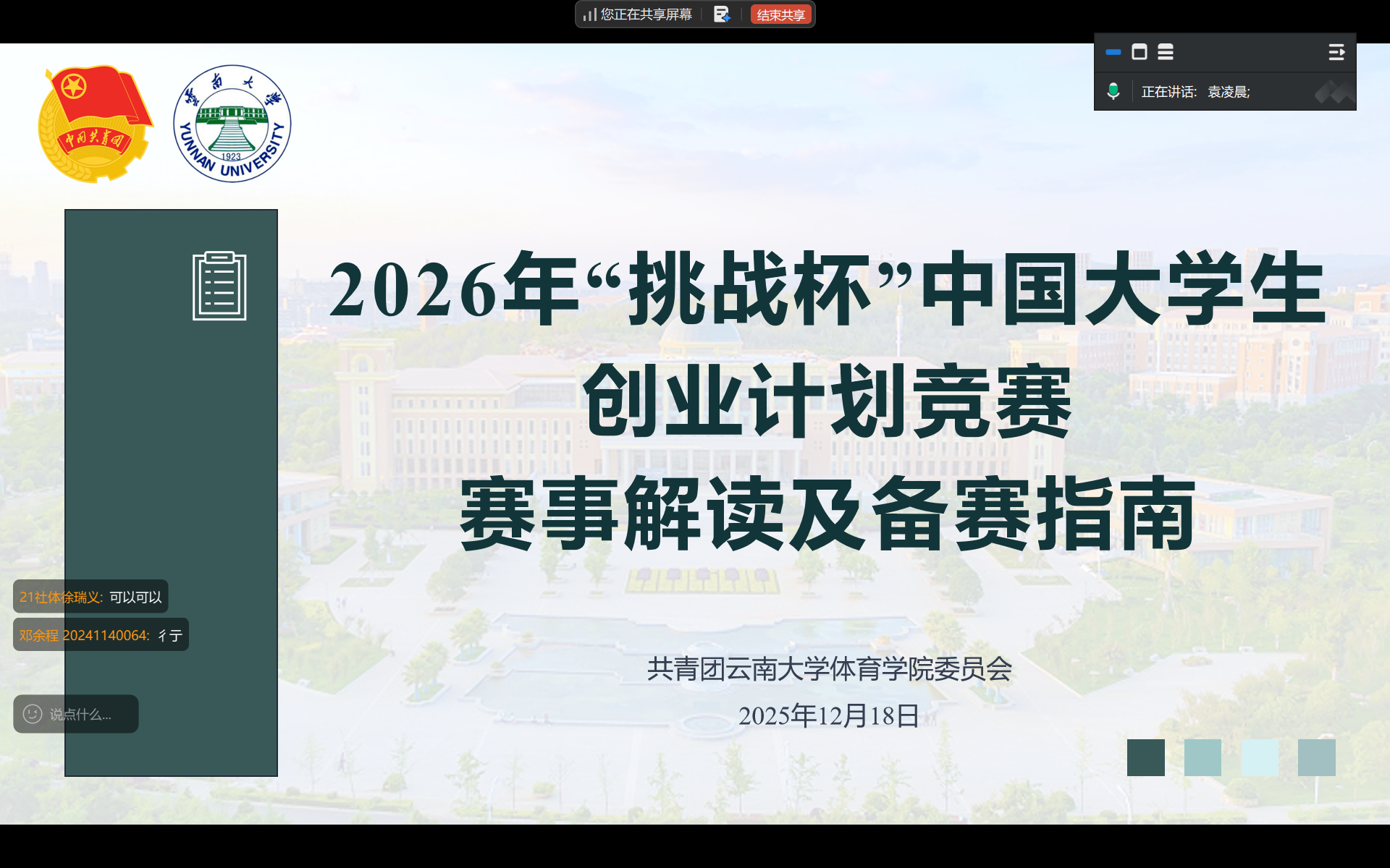 为充分激发学生创新创业热情,扎实做好2026挑战杯中国大学生创业计划竞赛的组织与培育工作,LETOU国际米兰官网团委于近日分别面向全院学生和骨干代表,以线上与线下相结合的形式,成功举办了专题宣讲会会议由学院团委负责人袁凌晨老师主持。