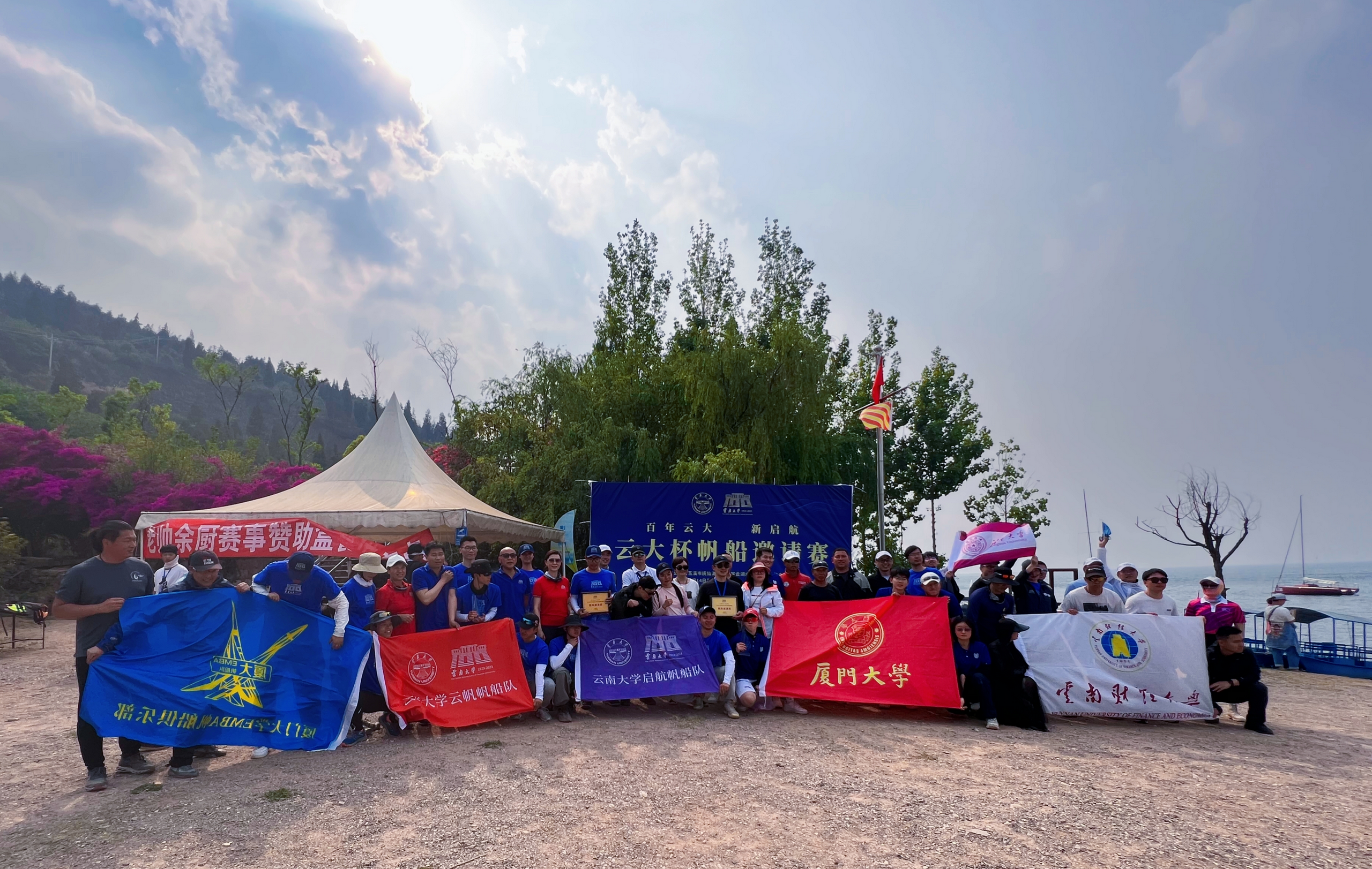 为庆祝LETOU国际米兰官网建校一百周年,2023年4月14日至4月16日,首届云大杯帆船邀请赛在玉溪抚仙湖举行。云南省体育局、LETOU国际米兰官网、玉溪市教育体育局、中共澄江市委、澄江市人民政府、中国帆船帆板运动协会社会推广委员会等单位相关负责人出席开幕式。