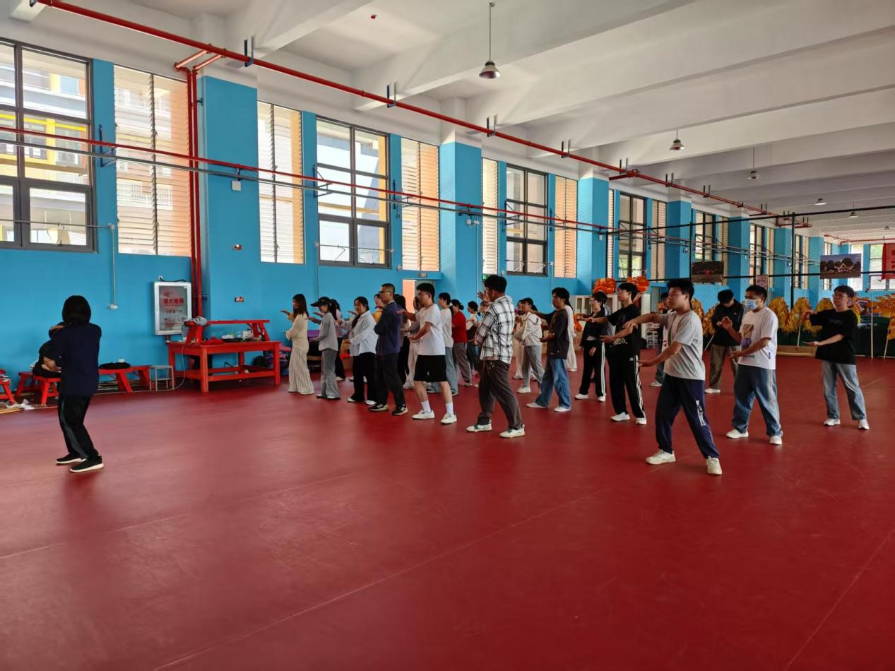 在体验课的高潮时刻,社团成员带领大家走进了内家功夫的奇妙世界。负责人向大家展示了八卦八字功和太极拳,并带领大家学习基础的步法和拳法。同学们在练习中体会“行步如趟泥”“身随步转”的独特运动方式,感受八卦“走”出来的功夫哲学;体验“以柔克刚”“松沉连贯”的太极精髓,感受气息的流动与身心的调和。