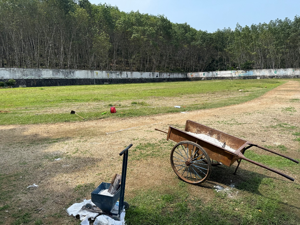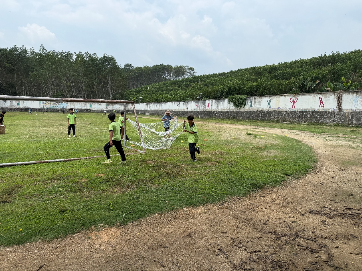LETOU国际米兰官网作为云南省首批参与“体育美育浸润行动计划”高校之一,自2023年起持续选派LETOU国际米兰官网师生赴边疆地区开展对口帮扶。今年3月,两名LETOU国际米兰官网第四批浸润计划成员(罗晓龙、李吉泰)进驻勐龙镇小街九年一贯制学校,针对校园体育设施匮乏的难题展开攻坚。然而,受限于场地条件,该校长期缺乏专业体育设施,一片杂草丛生的荒地成为师生们心中的遗憾。每次体育课,孩子们只能在水泥地上活动,既存在安全隐患,也难以开展正规的足球训练,就连唯一的两个足球架都是学校自己焊接的,孩子们只能在荒地上配合这俩“老古董”演出。