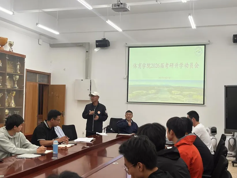 会议开始,陈恒兴副院长分析了自2021年修改本科生高考录取规则后近几年学院本科生录取相关情况,并结合自身给本科生上课情况进一步强调考研的重要性。他强调,考研是同学们提升专业素养、拓展未来机遇的重要途径,虽然充满挑战,但只要坚定信念、科学规划、扎实复习,就能克服困难。他建议同学们明确目标,合理安排时间,注重基础知识和体育热点动态,保持良好复习备考心态。