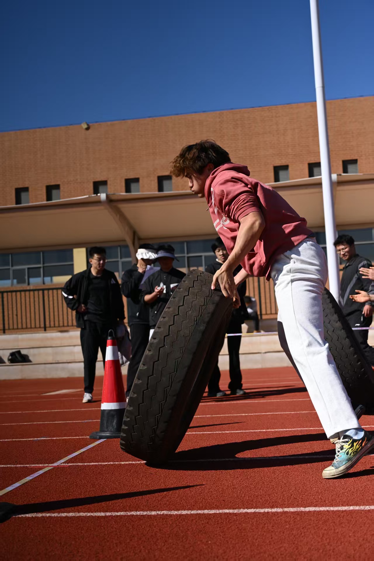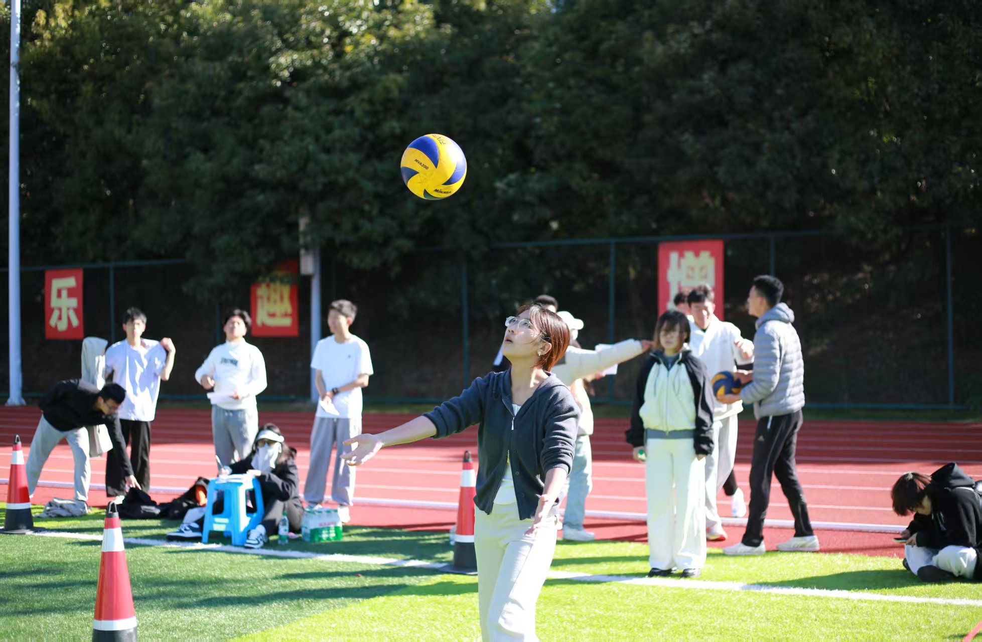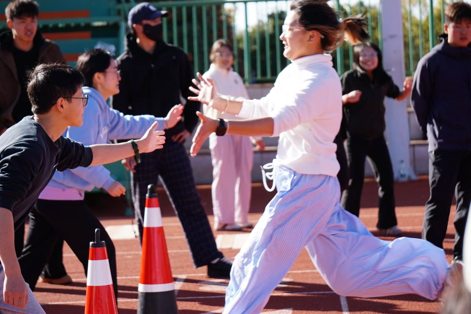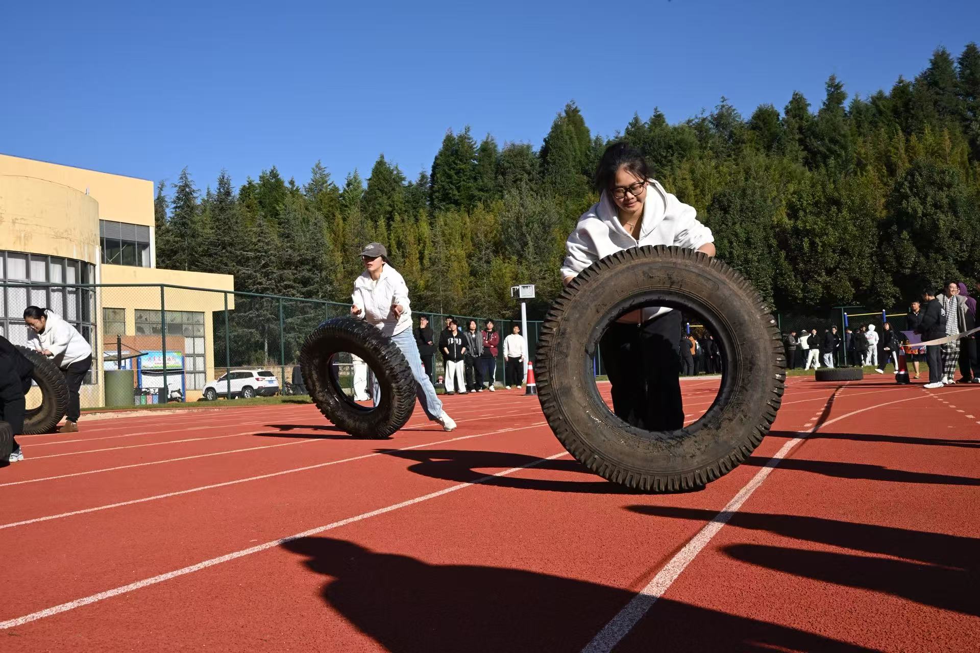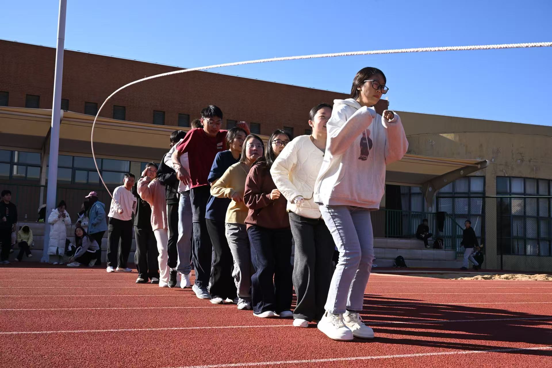 个人单项赛与全能赛陆续展开,吹气球引来阵阵欢笑,翻轮胎伴随热烈助威,助跑摸高赢得掌声不断。长跑赛场上,选手们咬牙冲刺突破极限。团队项目则将气氛推向高潮——接力交接流畅、跳绳整齐划一、乒乓球平衡跑默契互助,让同学们在协作中深切感受到团结的力量与集体的荣誉。参赛学生李同学表示:“多样的项目让运动不再枯燥,和同学一起挑战、冲刺的过程特别难忘,也让我意识到体质强健是成长成才的基础。”