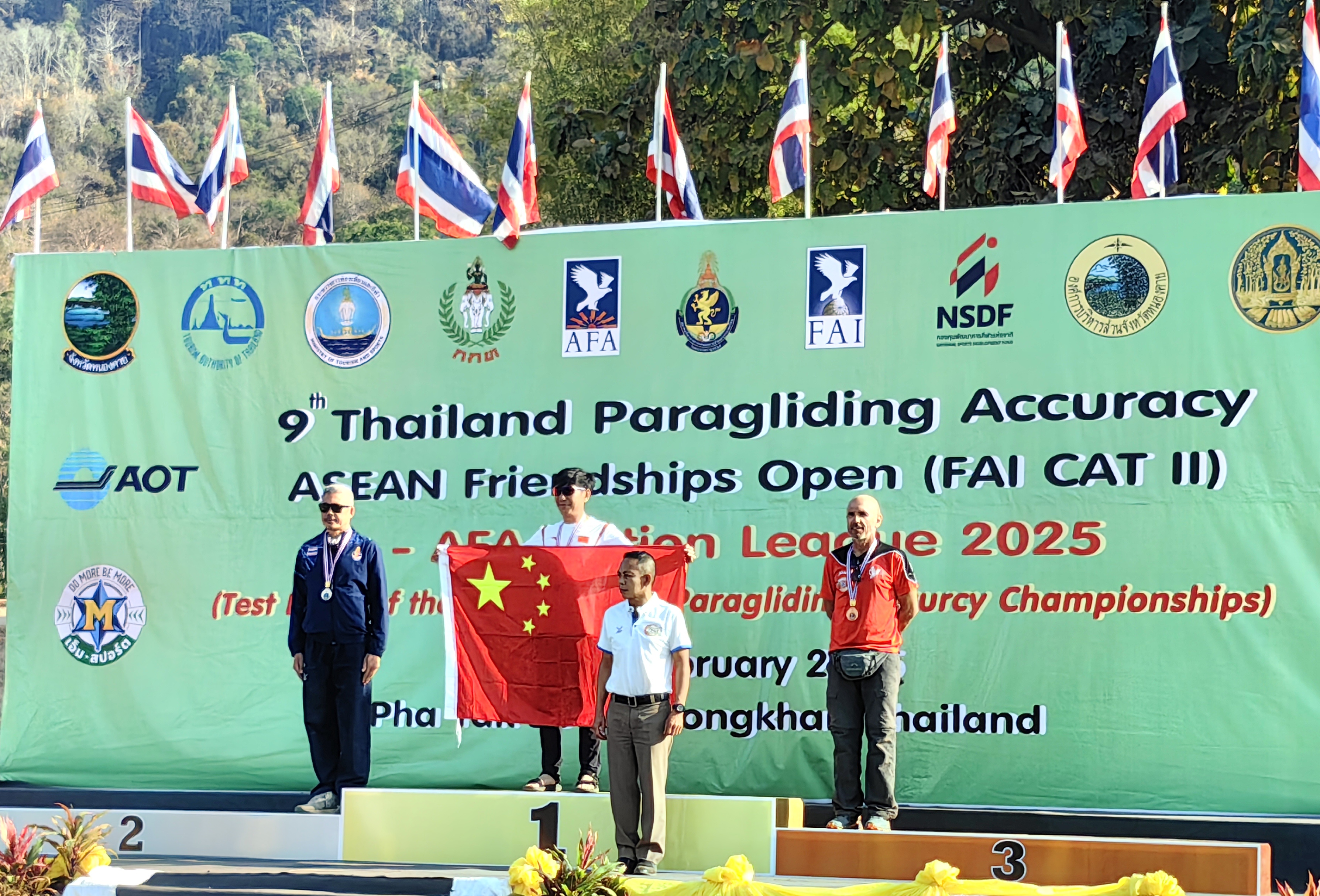 2025年2月6—10日,第9届泰国滑翔伞定点公开赛在泰国廊开隆重举行。此次赛事吸引了来自中国、泰国、韩国、科索沃、法国、伊拉克、印度、印度尼西亚、罗马尼亚、西班牙、沙特阿拉伯、蒙古、日本、阿联酋、土耳其等国家和地区的119名顶尖滑翔伞运动员齐聚一堂,共同展开了一场为期5天共7轮的激烈竞技。