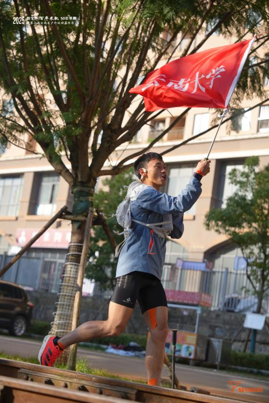 从宜良站出发,途经水晶坡站的陡坡、阳宗海的碧波,再到凤鸣村站的古意,云大学子的身影穿梭在历史与自然交织的赛道中。他们带着“会泽百家,至公天下”的云大精神,在晨光中并肩奔跑,在补给站分享能量,用默契配合化解路途疲惫,用坚韧毅力攻克每一个难关。赛道旁的宜良烤鸭、手工鲜花饼等特色补给,成为青春征程中温暖的注脚,而百年米轨的铁轨回声,仿佛在为这群年轻的追光者加油鼓劲。