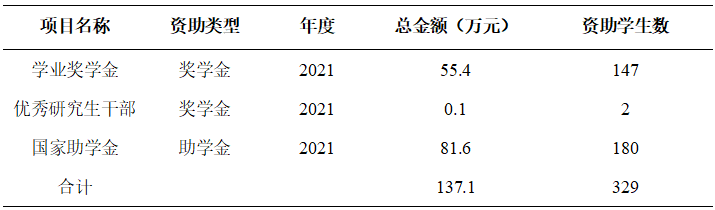 表4 奖助学金情况