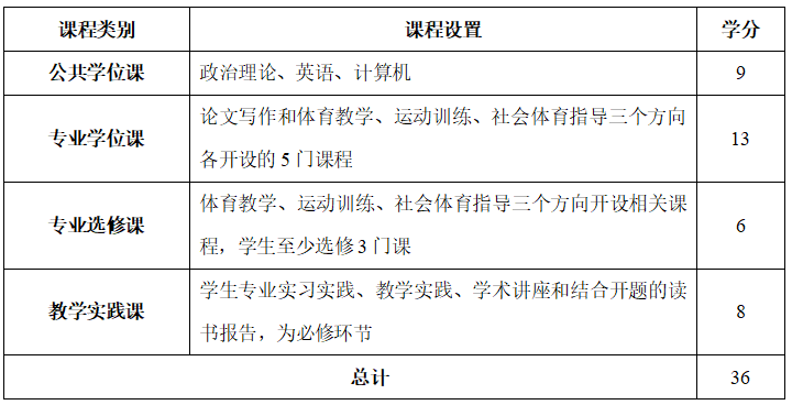 表1 体育专业硕士课程设置表
